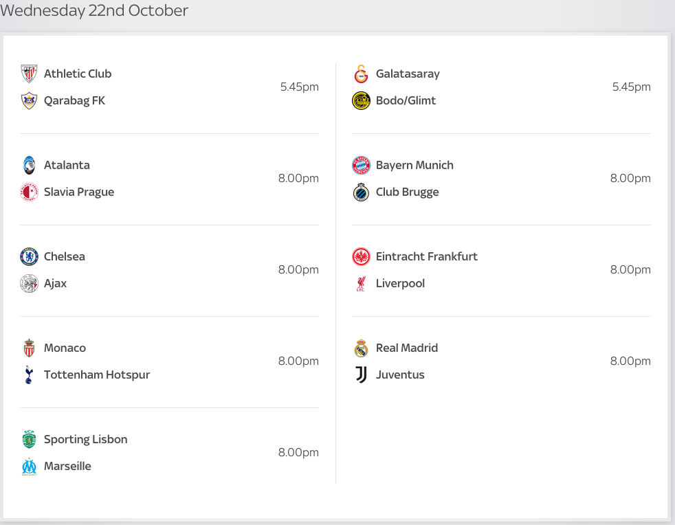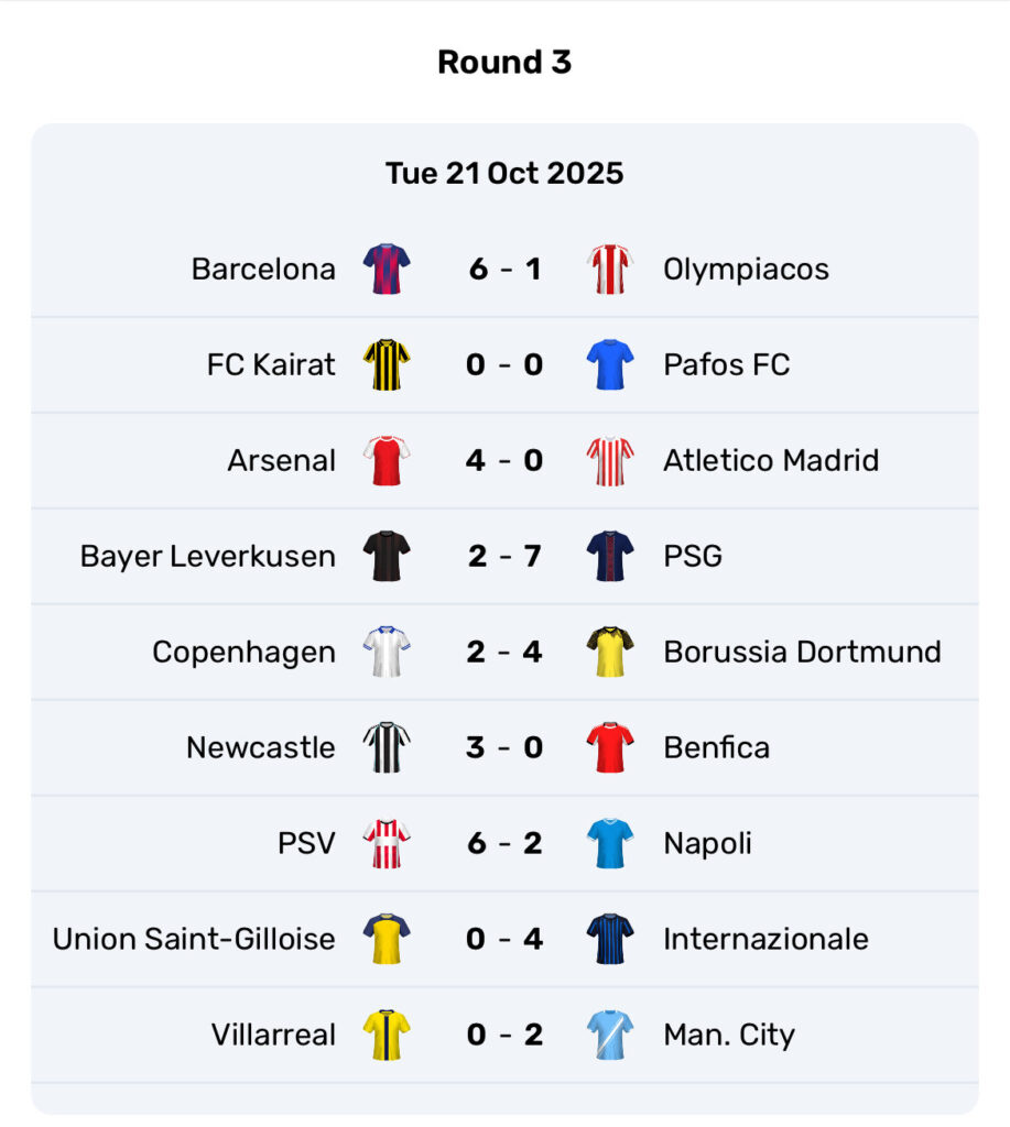 UEFA Champions League Group Stage Results for 21 Oct 2025